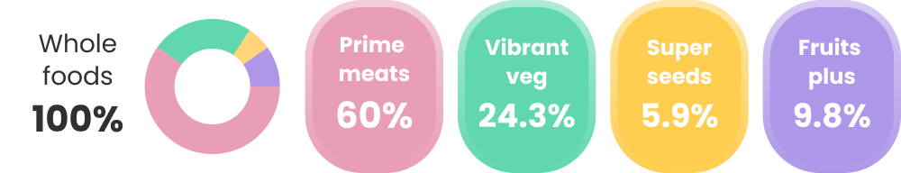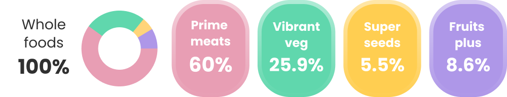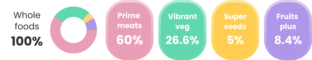 ![]() Fresh wholefood meals You receive 4 days of meals to be fed over a 7 day transition period |