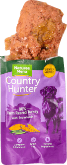 Your dog will enjoy matured steak, skinless turkey and chicken thighs with super fruits, seeds and vibrant vegetables.