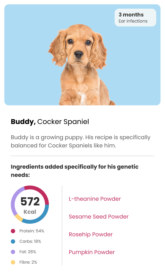 Tailored to your dog Tailored to your dog's breed, lifestyle, age and more |